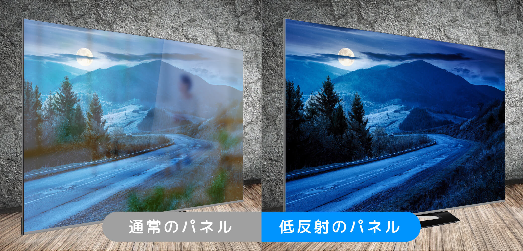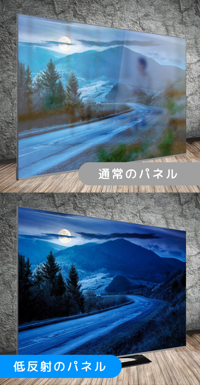 室内光やカーテン越しの太陽光の映り込み(反射)を抑え、